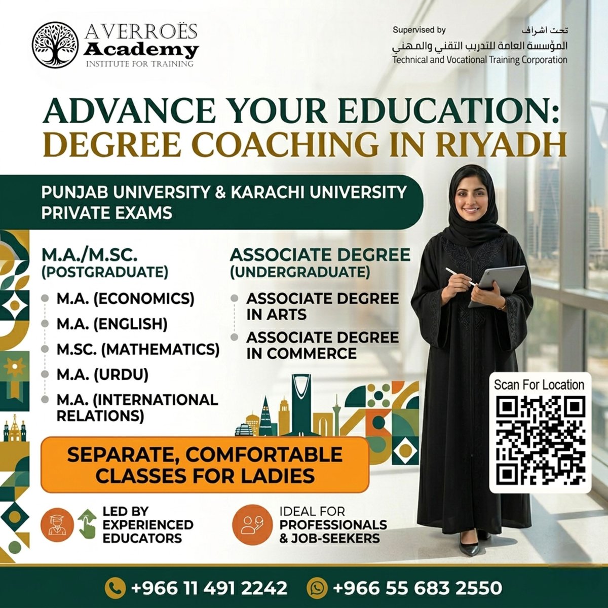 Averroes Academy is a premier, TVTC-accredited institution based in Riyadh, KSA. We are a team of highly skilled professionals dedicated to Excellence in Educational Development, Professional Training, and Study Abroad Consultancy.